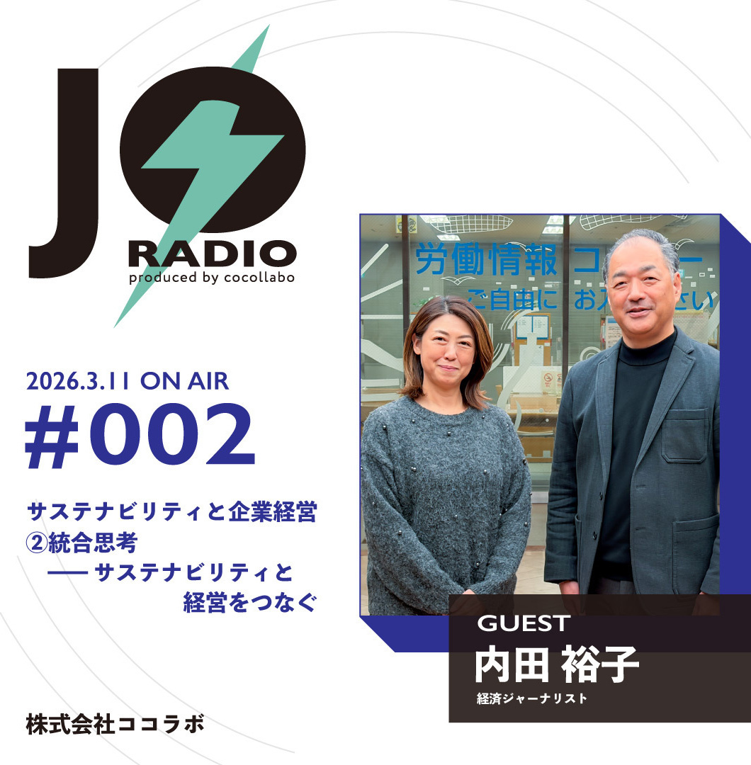 ココラボJOラジオ第2回の放送は、前回に引き続きゲストに経済ジャーナリストの内田裕子さんをお迎えして、サステナビリティと企業経営についてお届けします。今回のテーマは、統合思考。サステナビリティと経営を結びつける考え方について深掘りします。