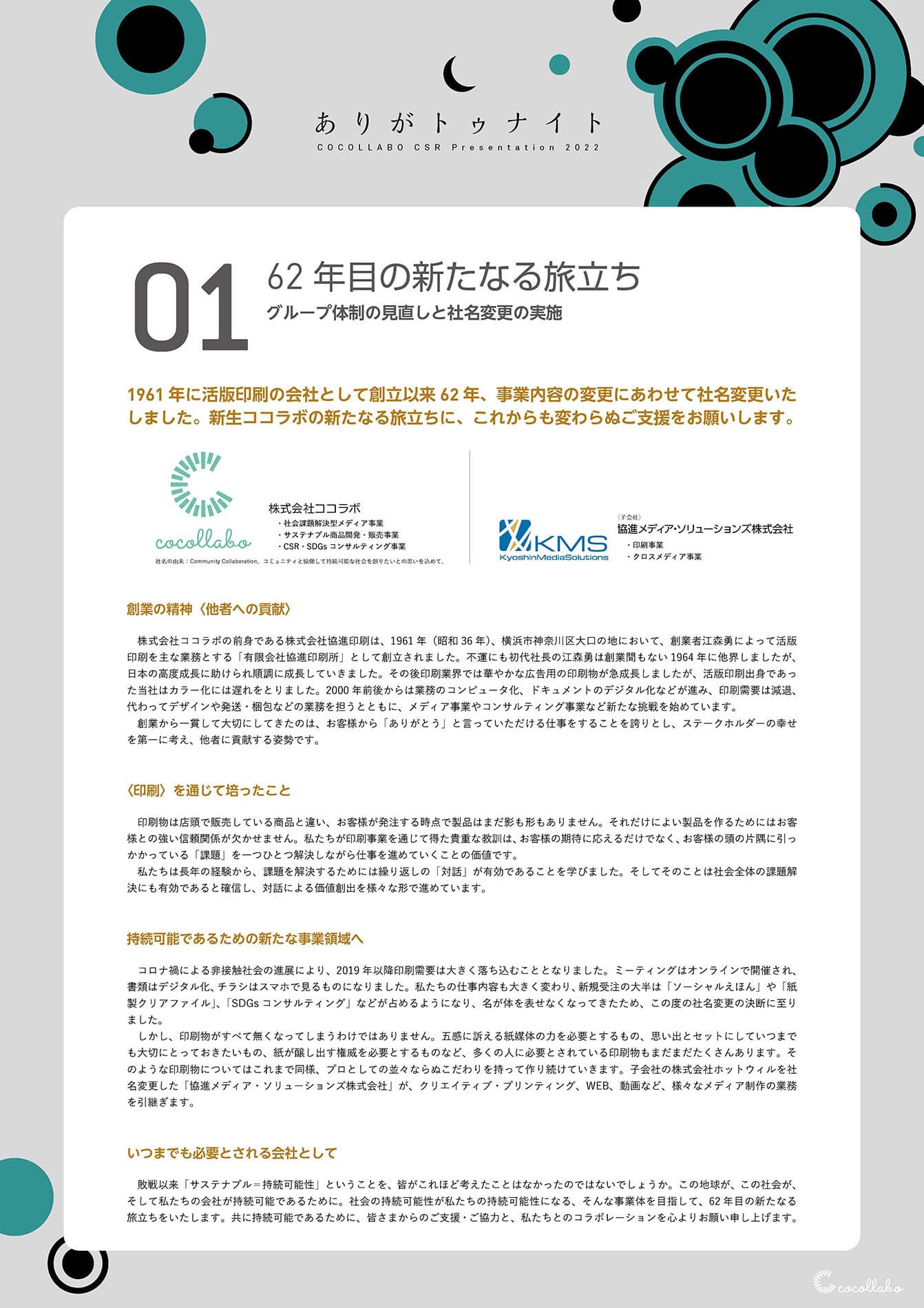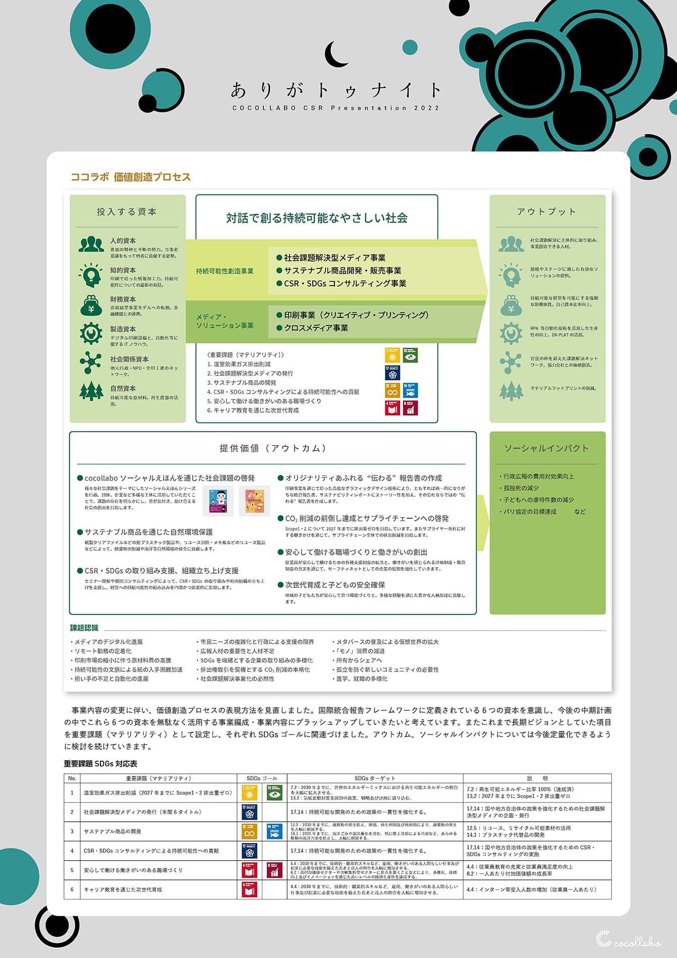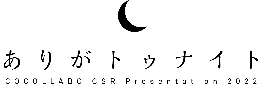 今年で9回目となるCSR報告会「ありがトゥナイト」。この2年はご来場人数を制限してのハイブリッド開催で、お楽しみの懇親の夕べも断念していましたが、今年はハイブリッドを維持しつつ、フルスペックで9月16日(金)に無事開催いたしました。このページでは本年度の会の模様について、ご報告として掲載いたします。