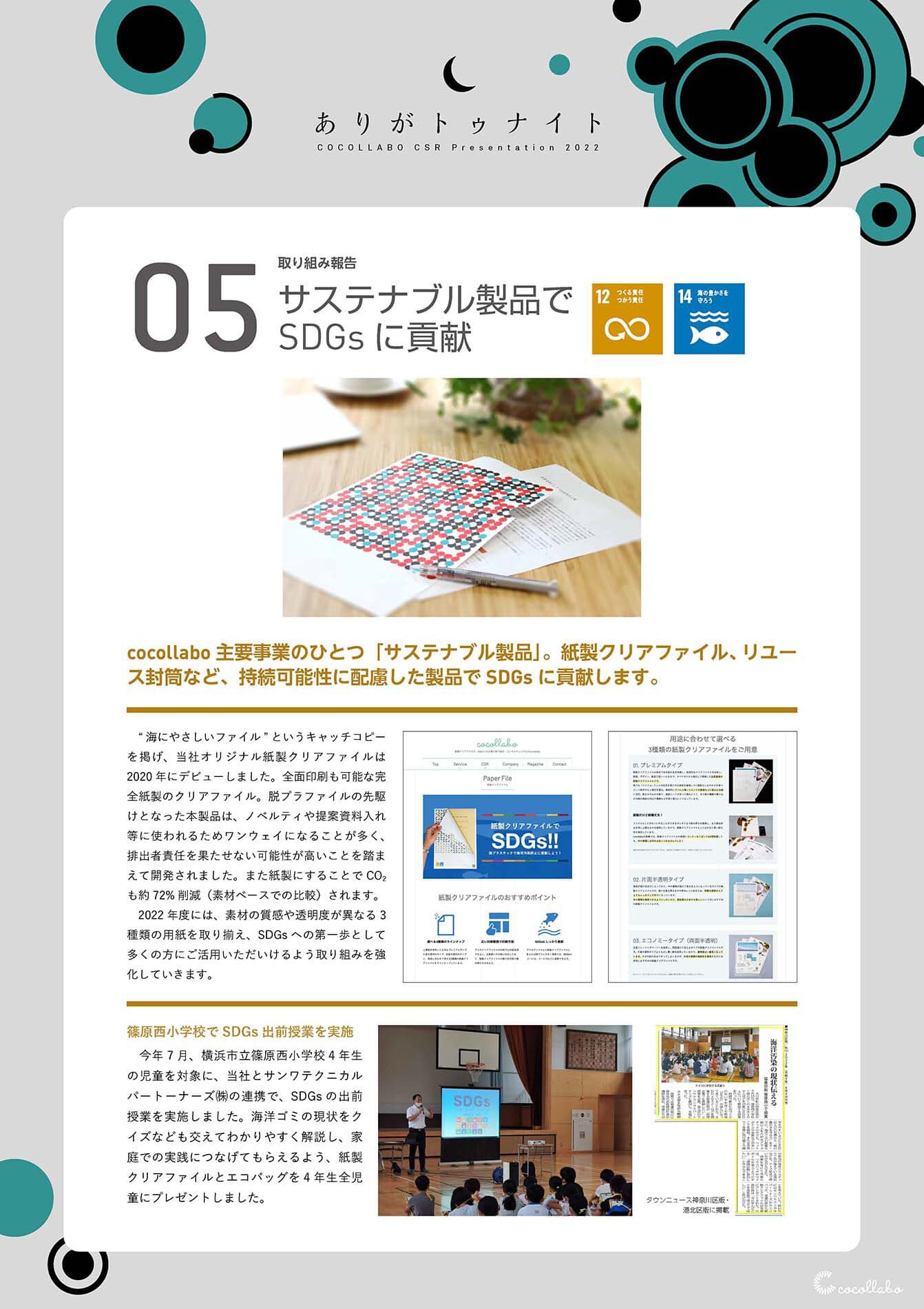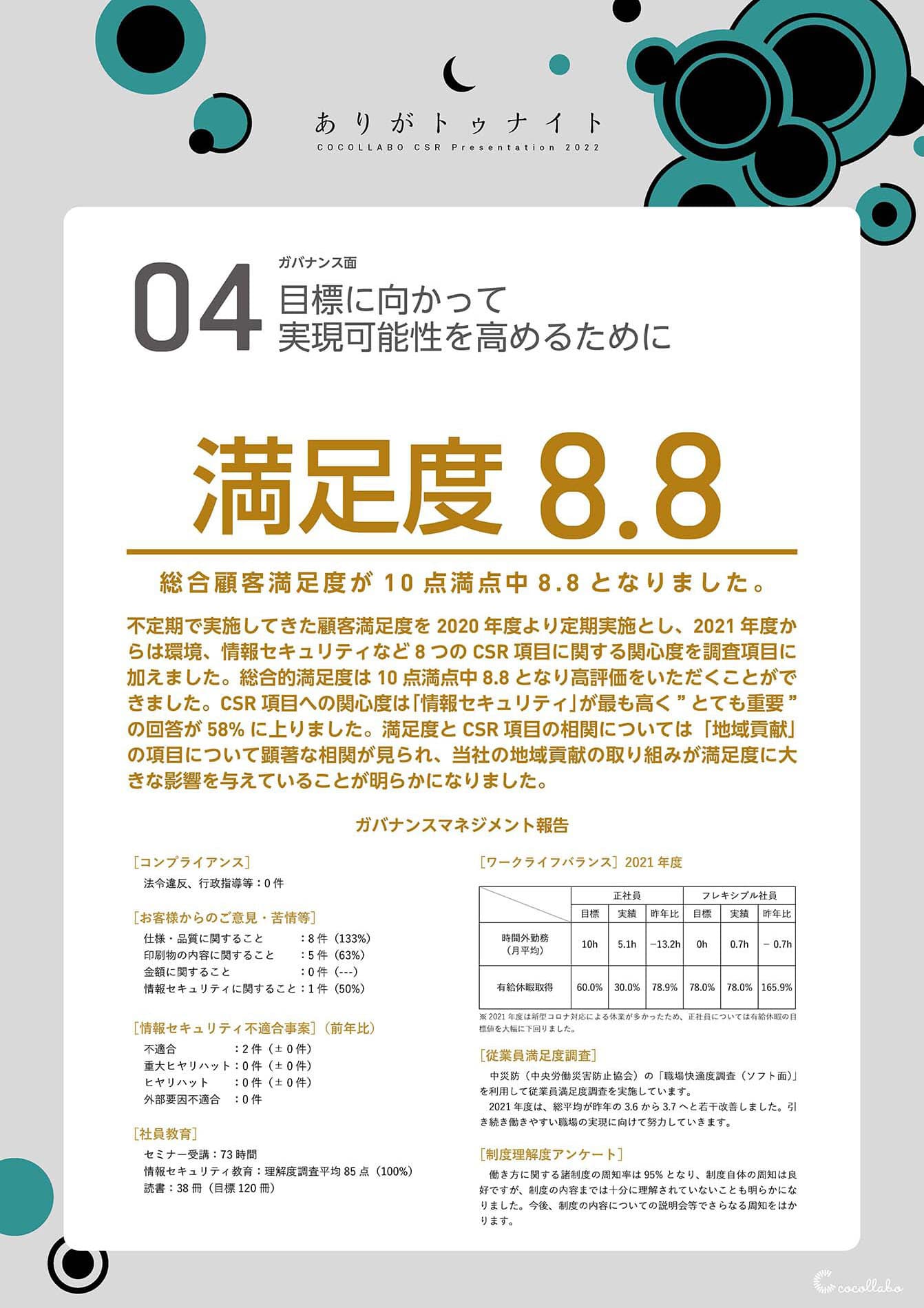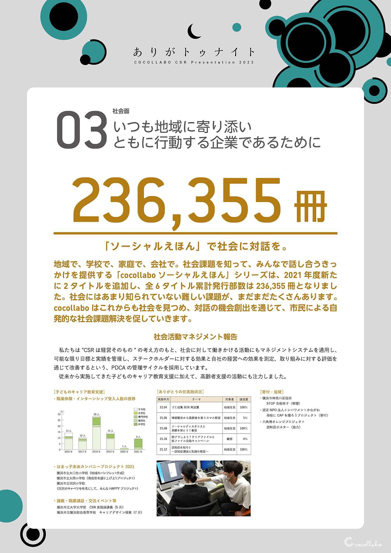 今年で9回目となるCSR報告会「ありがトゥナイト」。この2年はご来場人数を制限してのハイブリッド開催で、お楽しみの懇親の夕べも断念していましたが、今年はハイブリッドを維持しつつ、フルスペックで9月16日(金)に無事開催いたしました。このページでは本年度の会の模様について、ご報告として掲載いたします。